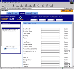 Inventory ID, Chemical owner, Department, Building, Room, Manufacturer, Product Number, Chemical Name,
