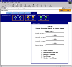 departments, and link users to chemical owners.
